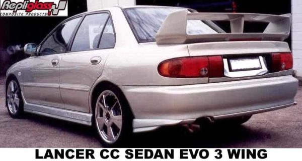 MITSUBISHI CC LANCER EVO 3 STYLE REAR WING WITH BRAKE LIGHT MADE FROM QUALITY FIBREGLASS MATERIALS IN A GEL COAT FINISH. CONTACT US FOR A FREIGHT QUOTE