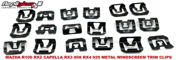 MAZDA R100 RX2 CAPELLA 808 RX3 RX4 929 323 WINDSCREEN TRIM CLIPS metal new reproductions