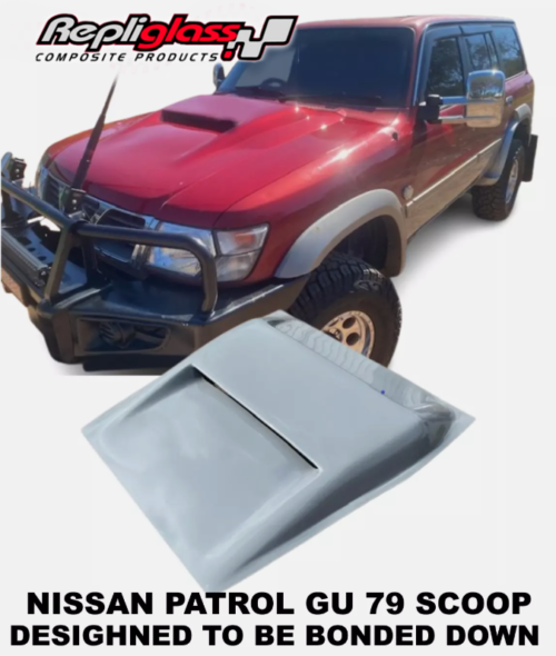 NISSAN PATROL GU SERIES 1, 2, 3 BONNET SCOOP 79 SERIES V8 STYLE SCOOP Designed to be bonded down.